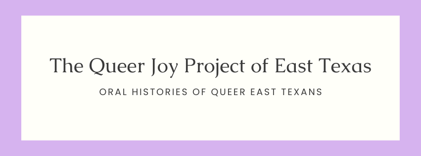 The Queer Joy Project is a digital archive devoted to preserving LGBT+ history in East Texas and showcasing moments of Queer joy. Through oral histories and photo elicitation interviews, each entry focuses on a Queer individual’s experience in East Texas. By documenting LGBT+ life in East Texas this project will uncover and document Queer history in the area, uplift diverse voices, and envision our future!